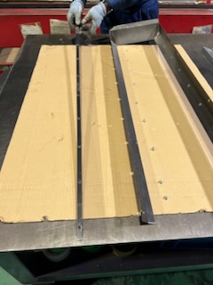 機械から落ちてくる抜き材が、ベルトの両端にこぼれ落ちないようにするのと