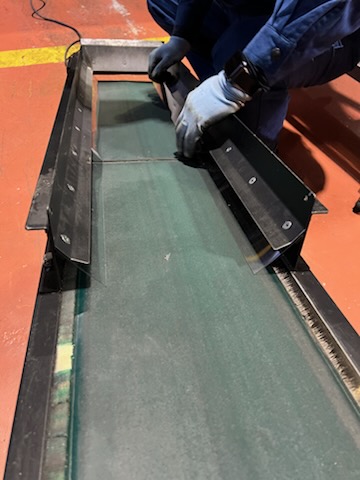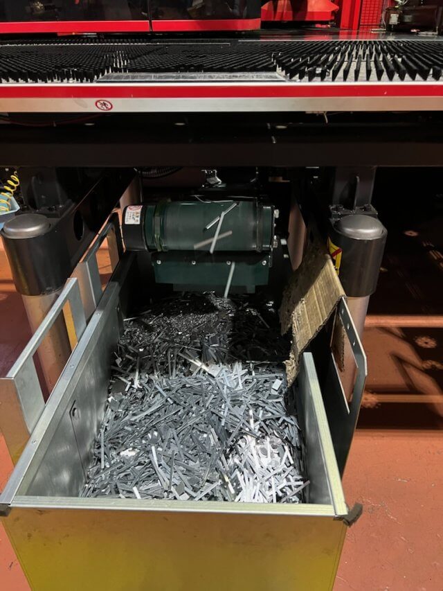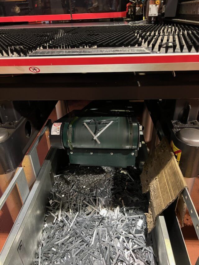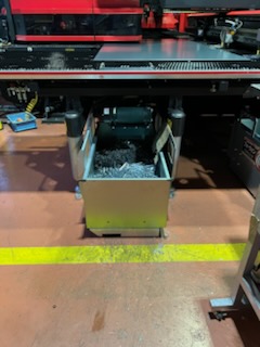 先週、タレットパンチプレス機の下に設置してあるベルトコンベアの手入れがしやすくなるように