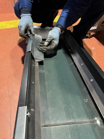 外に落ちたものや、ベルトの下に潜り込んだ抜き材を掃除するのが