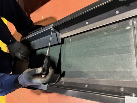 先程のアクリル板に既存の取付板のネジ穴をあけ、ネジを締め取付けます。