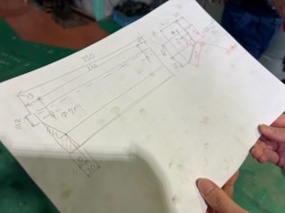 その間にCADでは抜き材が落ちてくる部分の両側に立ち上げるガイドを設計。