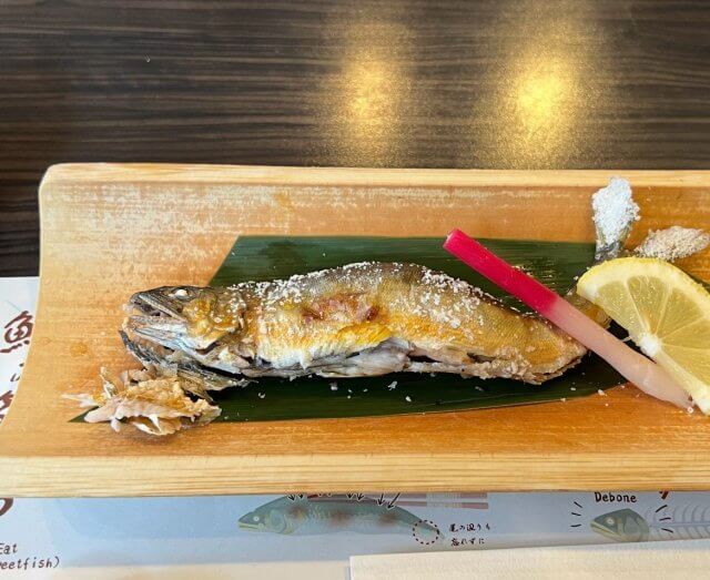 天然の鮎は頭から一気に背骨がずるっと抜けるのです。