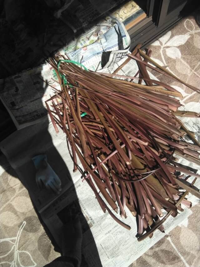 里芋の茎です。「たつ」とか「赤だつ」とか言います。