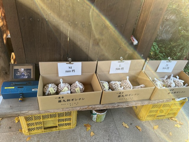 毎年11月ごろからはお寺に何本もあるイチョウの木にぎんなんが実るので収穫作業に追われ一番忙しい時なんだそうです。