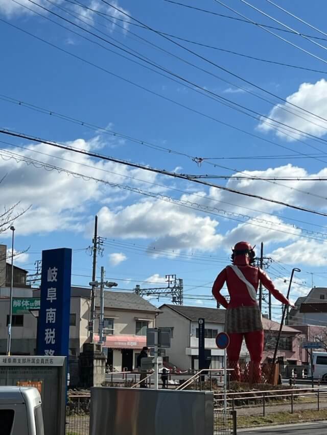 岐阜市加納では毎年大きな赤鬼が現れます。