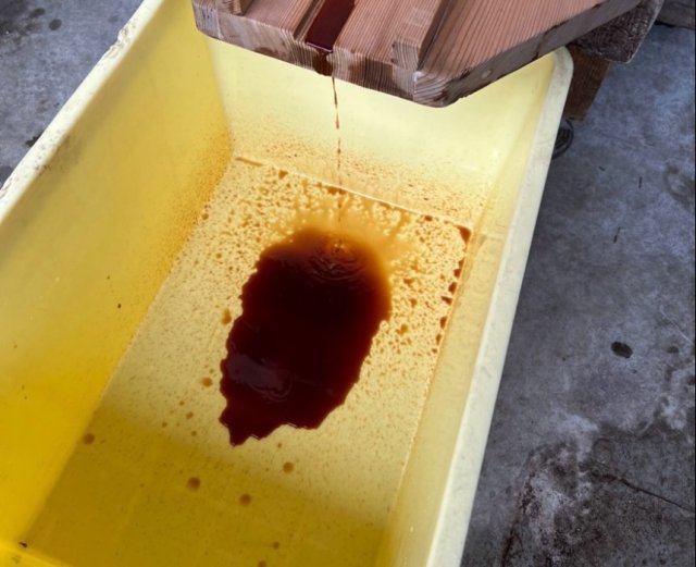 絞り師のかたが絞る様子を拝見しているとお醬油ってこんな風にできるんだと驚きます。