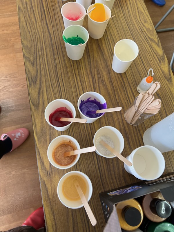 アクリル絵の具にポーリングメディウムやシリコンオイルを混ぜ