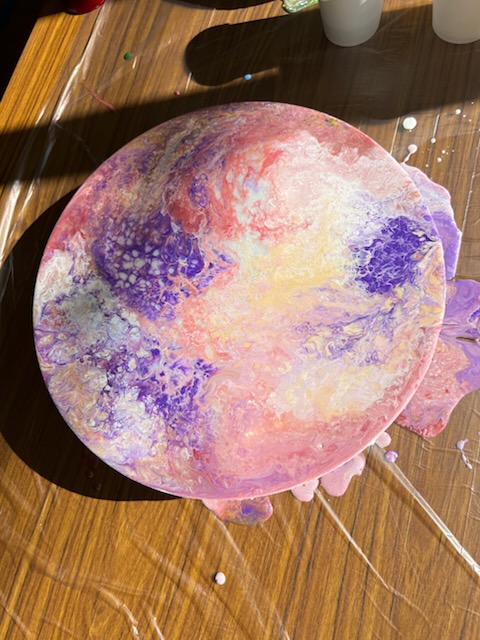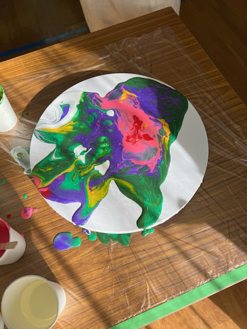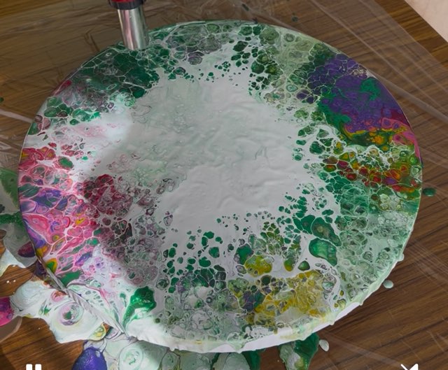 ポーリングアートは自分が思ったようにはできなくて、逆に偶然出てきた色や模様を楽しむアート。