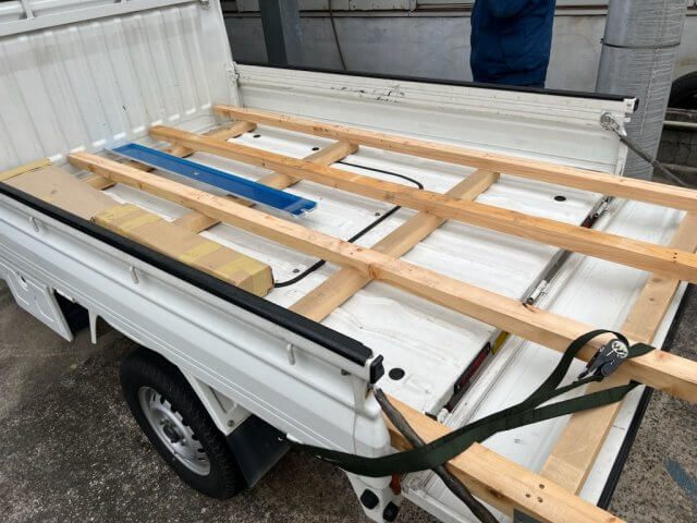 えー!軽トラって小さなものしか運べないイメージだったけど4×8のサイズがギリ乗るんだ!