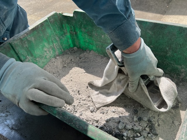 灰の中には釘が残っているので、強力磁石で分別します。