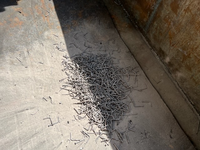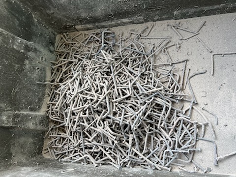 鋼材用スキットを解体して燃やしているので釘は抜く手間を省きそのまま燃やしています。
