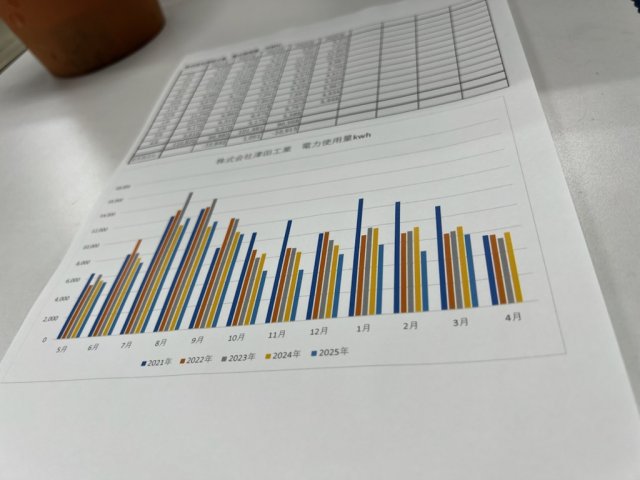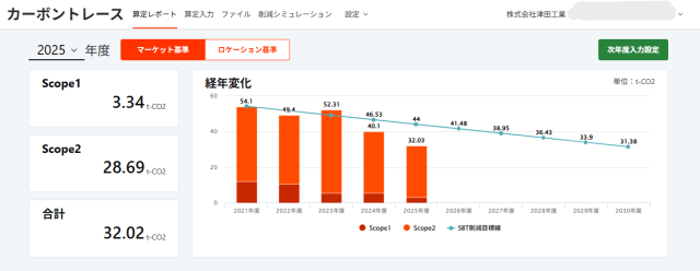 毎月の電力使用量をカーボントレースに入力して温室効果ガスの排出量を記録、可視化しています。