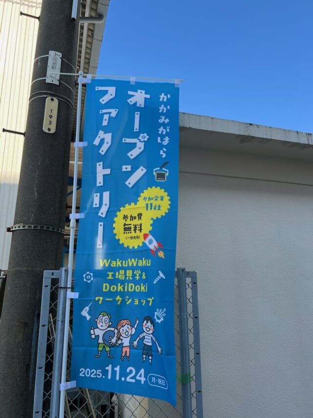 参加してくださる方々が、工場の場所を下調べされることもあるので、もうのぼりをたてておいても良いと思います。