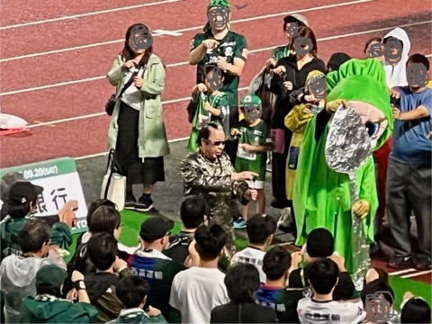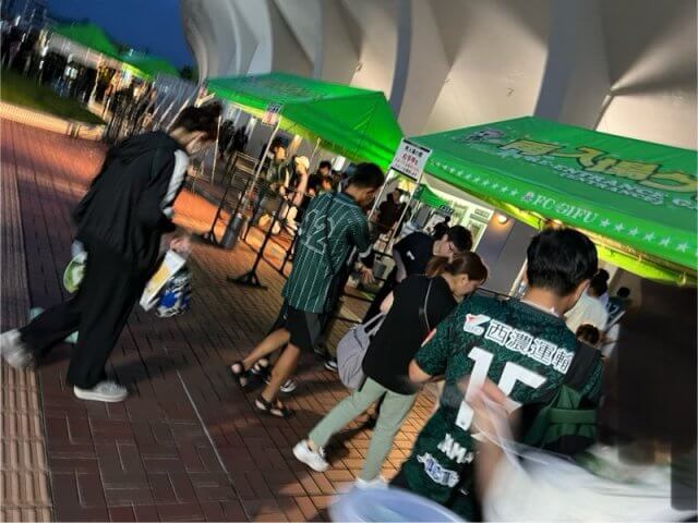 来場の皆さんがFC岐阜のユニホームを着ていらっしゃる人が多いので、