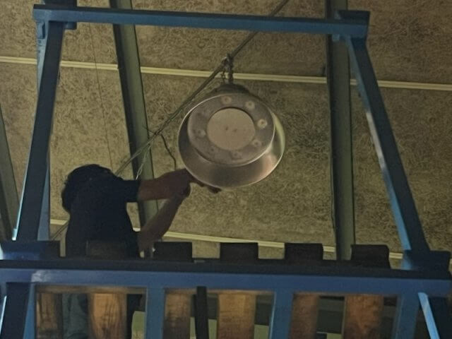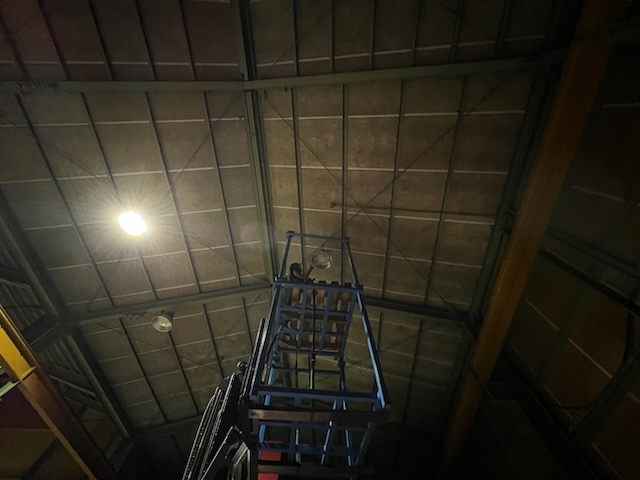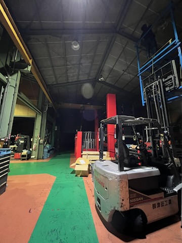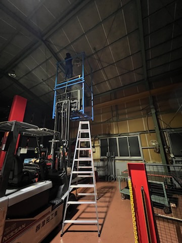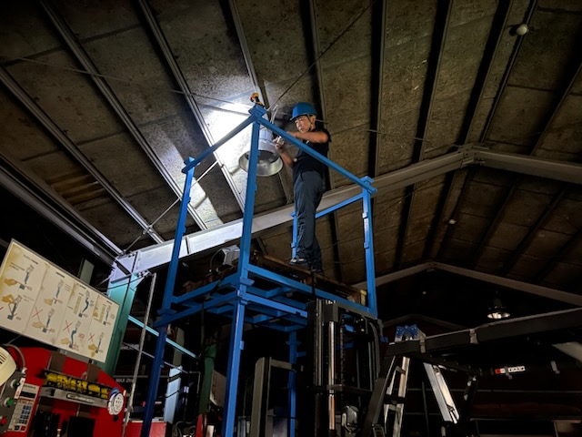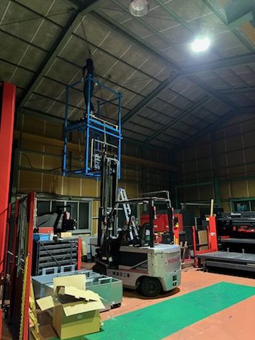 工場の天井が高いので取り換えには固い決意で挑まないとやる気になれません。