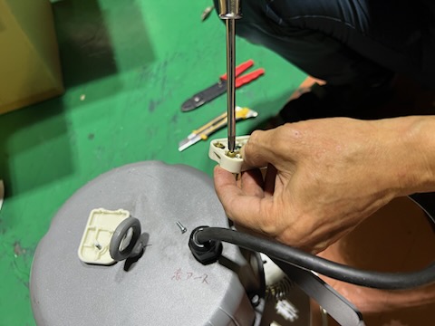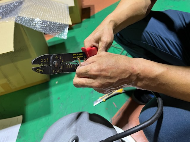 社長曰く、ネジが回転して閉まる方向(右回り)に銅線を添わせないと後々銅線が動く力でネジが緩むのだそうです。