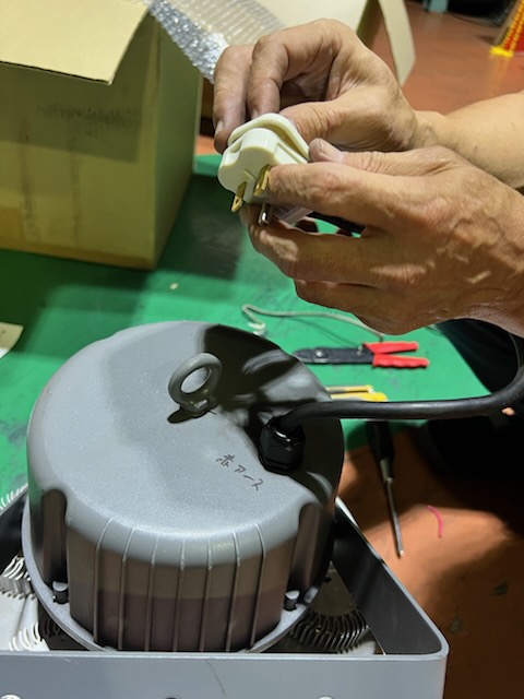 何回もやるうちにもっと作業をしやすくするために電気ケーブルに200Vのコンセントプラグを取り付けることにしました。