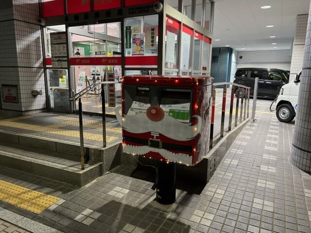 いつも利用している各務原郵便局のポストがとってもかわいらしいサンタさんに変身していました。