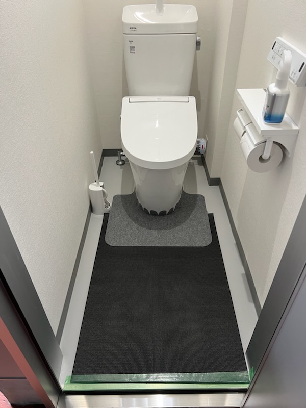 足が少し不自由なのでマットがめくれるとつまづき転倒の危険があると思ったので手前には養生テープを貼りました。