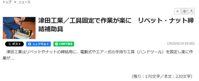 2023.06.19 日刊工業新聞に掲載されました 2023.6.19 「日刊工業新聞」2023.6.19. 新製品フラッシュ~産業編~に弊社の商品「フットペダルスタンド」が掲載されました。 詳しくは、日刊工業新聞web版をご覧ください。 こちらをクリック