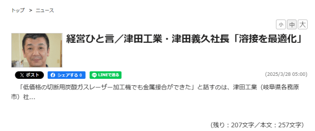 こちらをクリックすると、日刊工業新聞ウェブ版がご覧になれます。